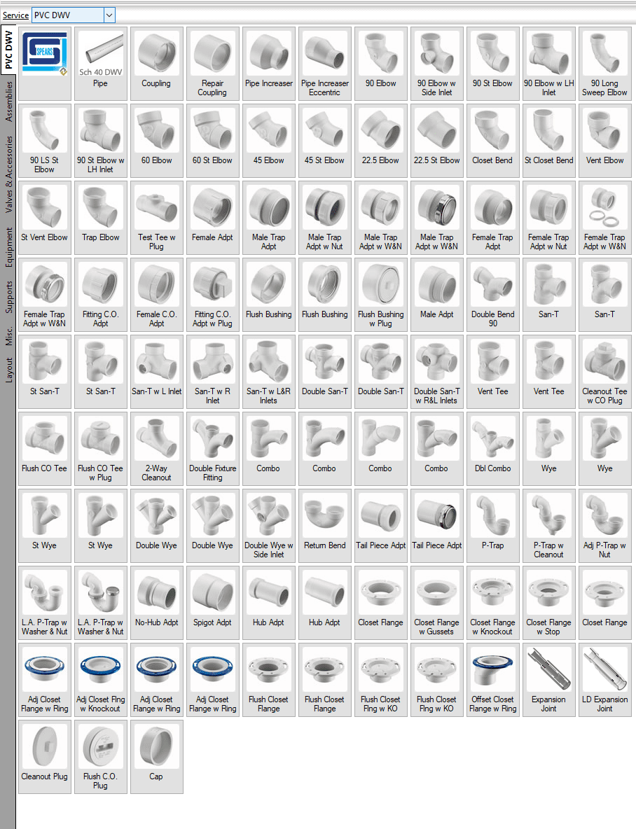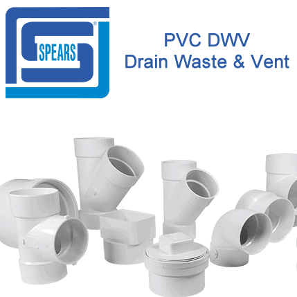 Spears® PVC Schedule 40 solid wall pipe and PVC DWV fittings intended for use in sanitary drain, waste and vent and non-pressure applications where the application operating temperature does not exceed 140° F (63°C).